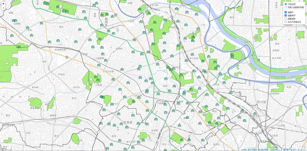 地震・大規模火災発生時の避難場所には、「一時(いっとき)集合場所」、「避難場所」、「避難所(救援センター)」等があります。それぞれの役割を理解し、学校周辺や自宅周辺の避難場所を確認しておきましょう。