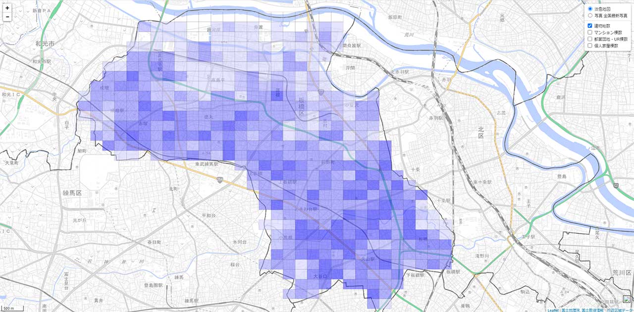 板橋区の住宅系建物の分布をみて市街地の危険性を考えてみよう。