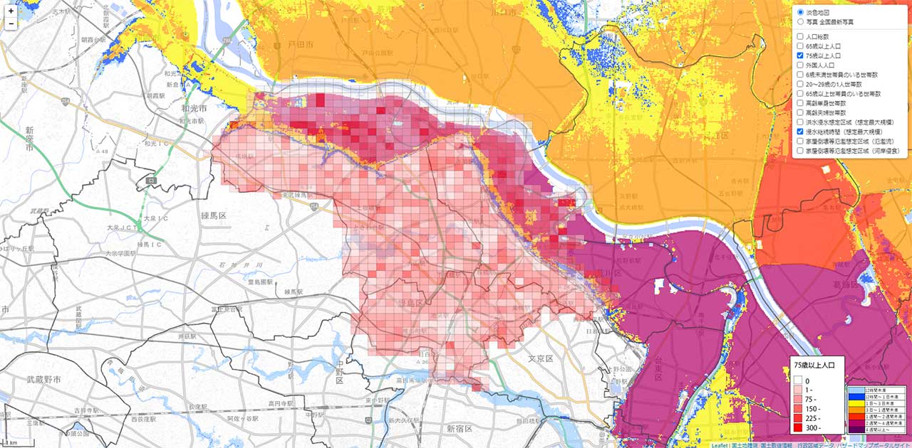 洪水浸水想定区域内にどれくらいの高齢者が住んでいるでしょうか?高齢者が無事に避難するためにはどうしたよいか考えてみましょう。